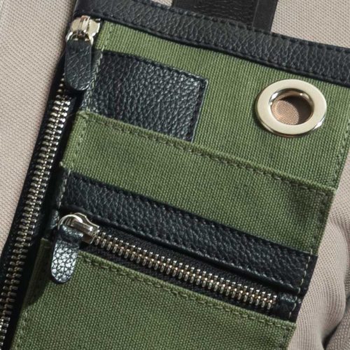 Green VBag in fabric and black leather